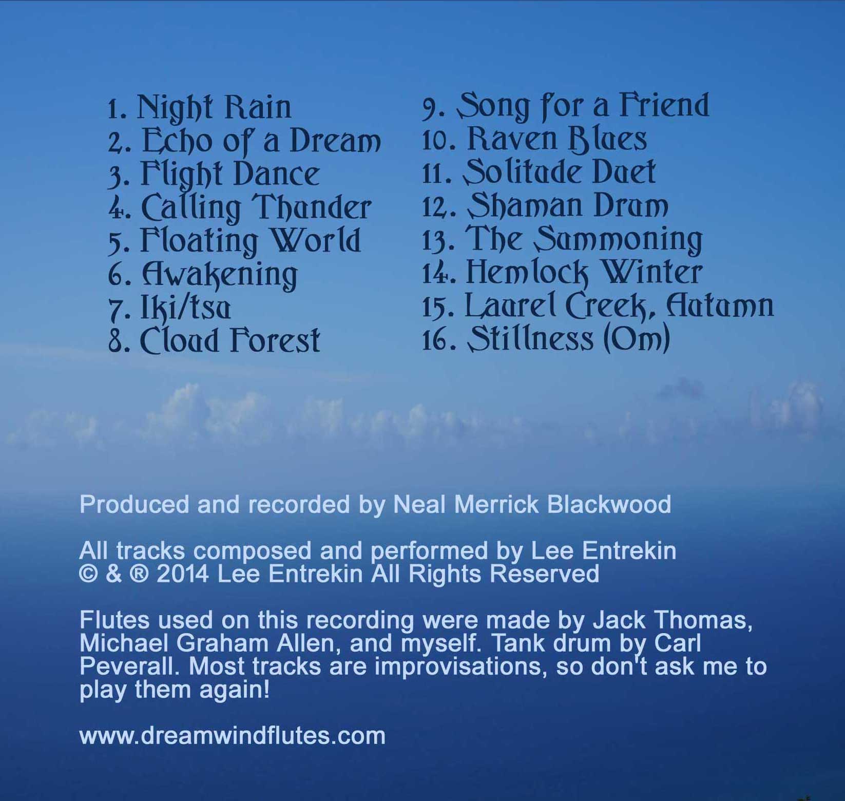 Change your cover photoUpload Change your cover photoUpload Lee Entrekin Wood•Dreamwind Flutes•http://www.dreamwindflutes.com This user account status is Approved About About Gallery Gallery Back to Albums CD's Floating World - an album of instrumental improvisations on Native-style flutes.