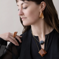Summer creates modern jewelry pieces from exotic hardwoods, blurring the line between art and fashion. Unlike traditional jewelers, she uses wood as the foundation for the work. Each piece is meticulously shaped and carefully crafted by hand to achieve a smooth, high-polished finish. She intuitively responds to the wood grain and considers every angle to add depth and dimension to the work. The natural oils from the wearer's skin condition the wood over time, creating a symbiotic relationship between the jewelry and the wearer. She also handcrafts custom clasps and metal details using precious metals to complement the quality of the wood. The end product challenges the perception of wood jewelry as a DIY accessory and showcase its potential as a high-end, artisanal form of wearable art.