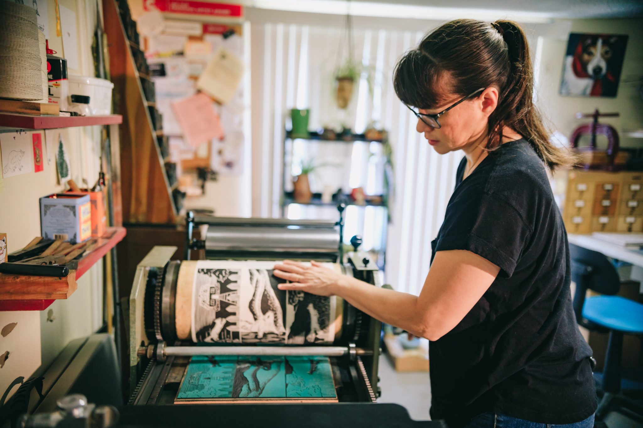 Featuring work by Gena Hopkins (bead jewelry), Theresa Clower (mixed media), Jessica White (printmaking), Vicki Love (leather), and Bob Bragg (furniture), the exhibition brings together five distinct voices united by an exploration of curvature, movement, and rhythm in craft.