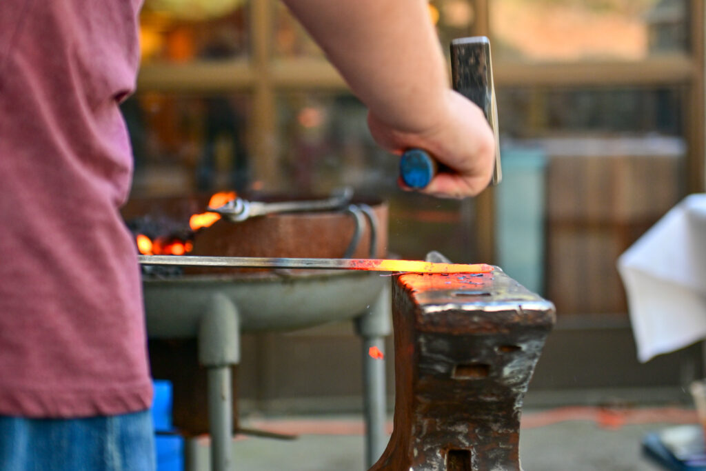 Demonstrations will include blacksmithing, glass blowing, metal piercing and annealing, knife making, bezeling, repoussé, stained glass soldering, forging, raku firing, wheel throwing, hand-building clay, and more.