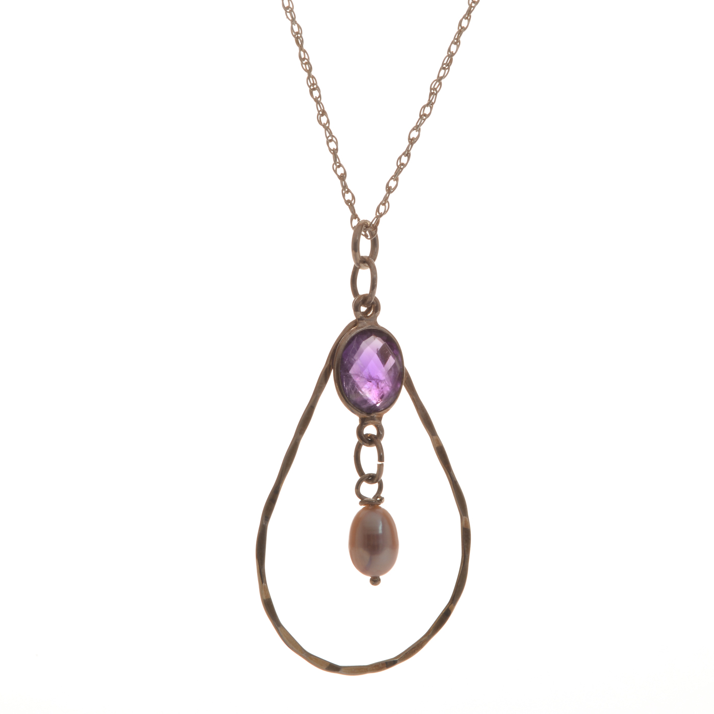 Teardrop Twist Amethyst and Pearl Necklace