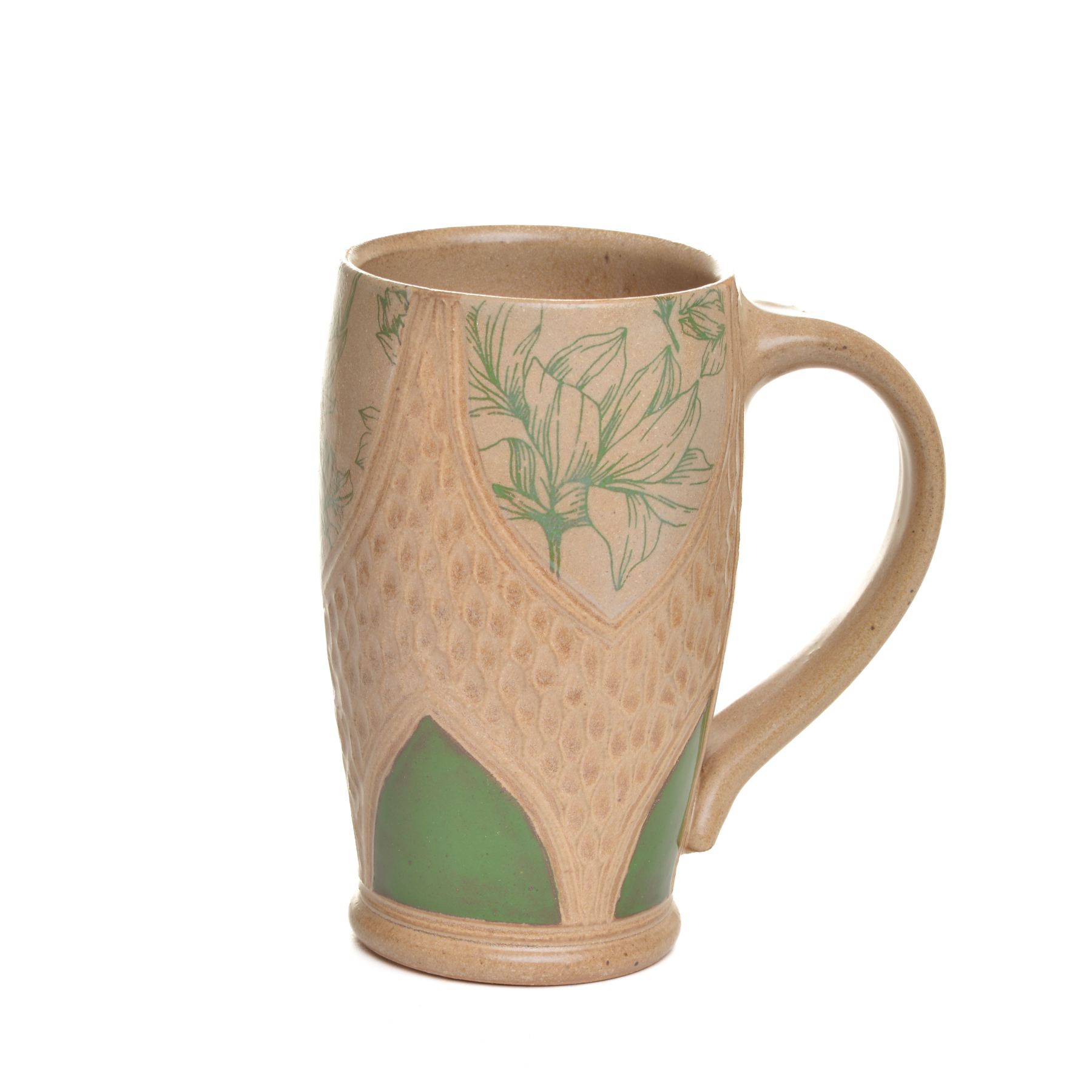Tall Carved Ceramic Mug