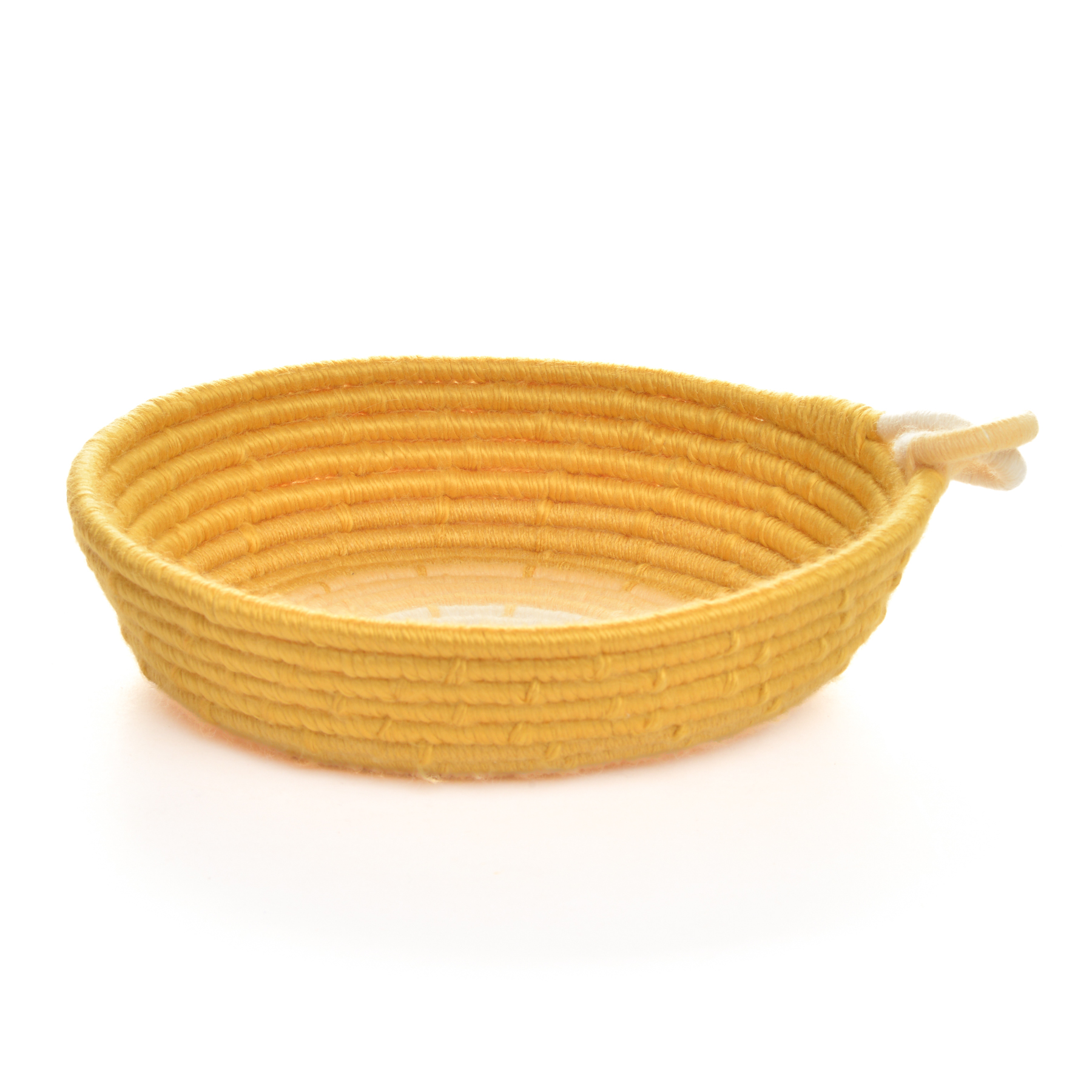 Ann Oakes grew up in the 60’s with creative music happening and crafters making macrame plant and wall hangings. She found a pamphlet with directions on how to make coil baskets. Caught up in the spirit, she made a few for fun but was unable to devote herself to such a time-consuming activity. Fast forward to 2018 and retirement on the horizon. She decided to try her hand again at making coil baskets and soon realized she loved it. She dedicated a year to honing her craft and realized that she had found her creative path. She started crafting baskets with flowers and beautiful motifs and then discovered that they could also be hung as wall décor. Her baskets are made with rope and yarn. Ann suggests stashing just about anything in the baskets, but wet items are inadvisable. Or… just display them on a wall or shelf. Not only are they utilitarian, but each basket is a unique work of art!