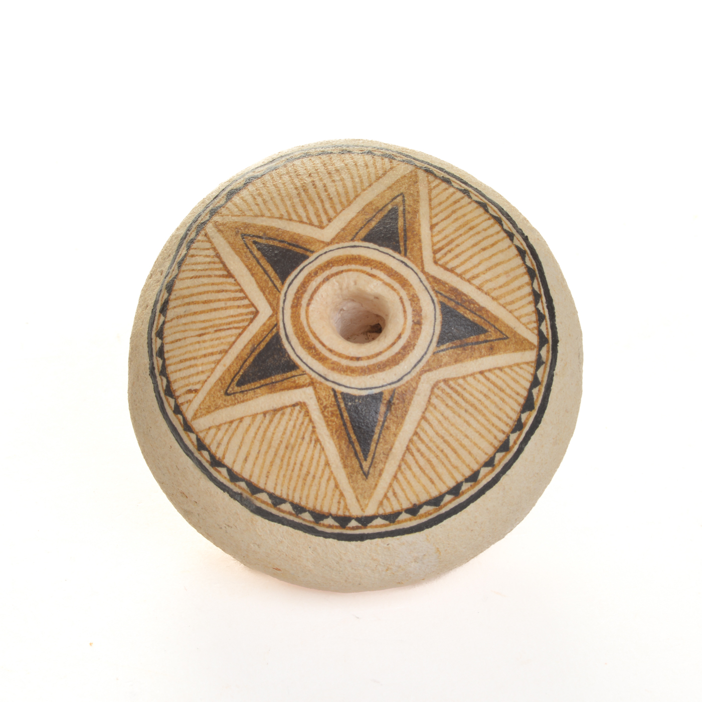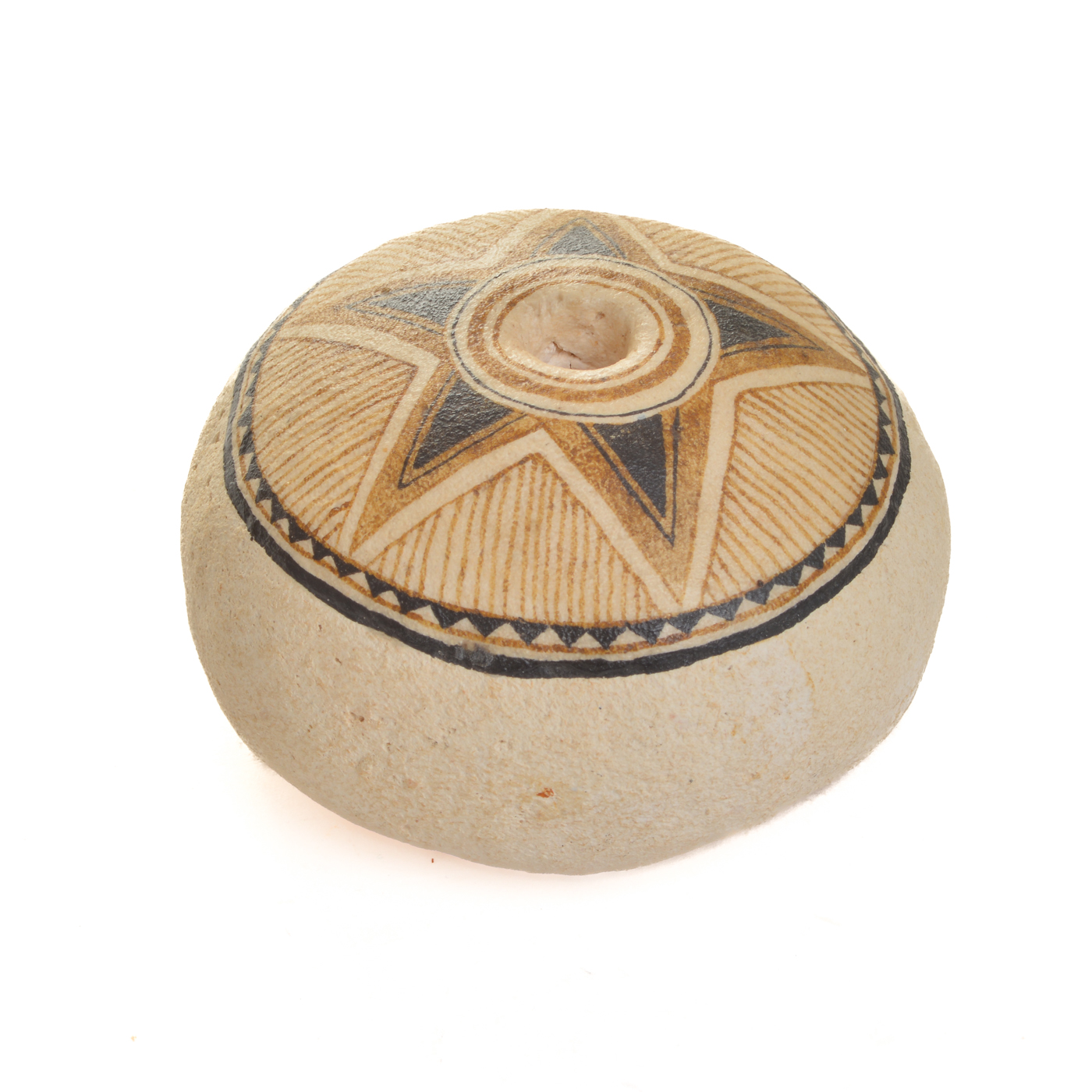 Original designs hand-painted on sunbaked paper clay by Mänya Pirkle of Tennessee. Each piece is inspired by fossils, pottery, and cave paintings—representing traces of human existence that have survived the ages.