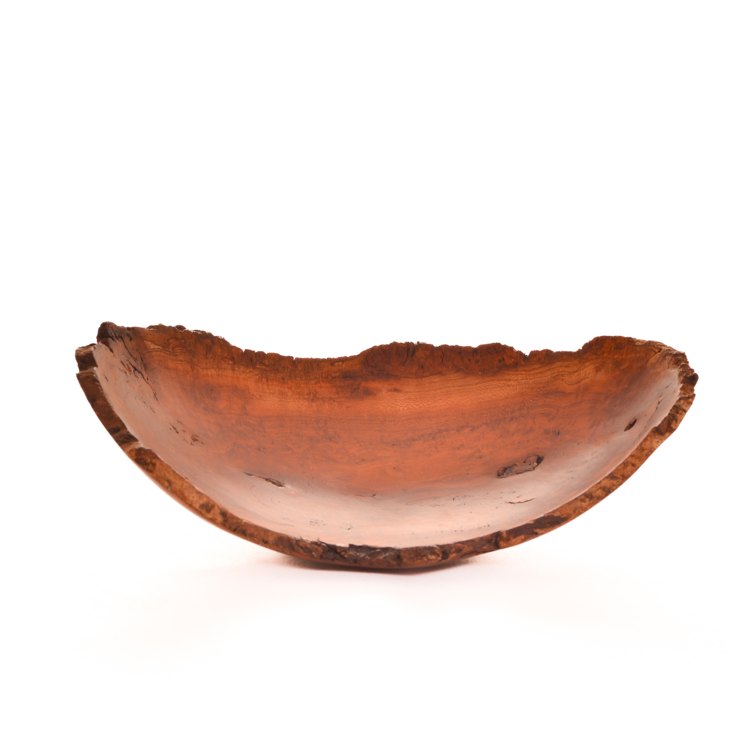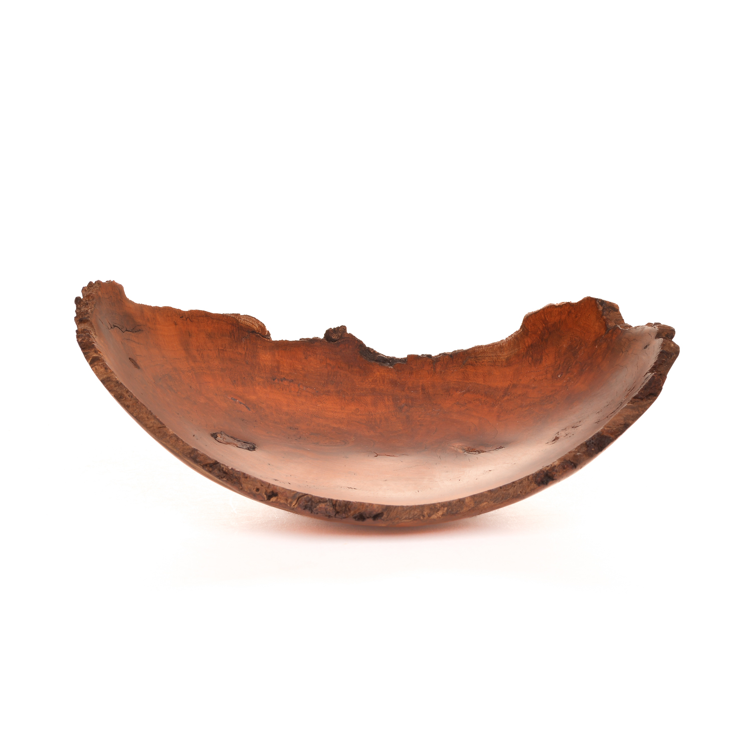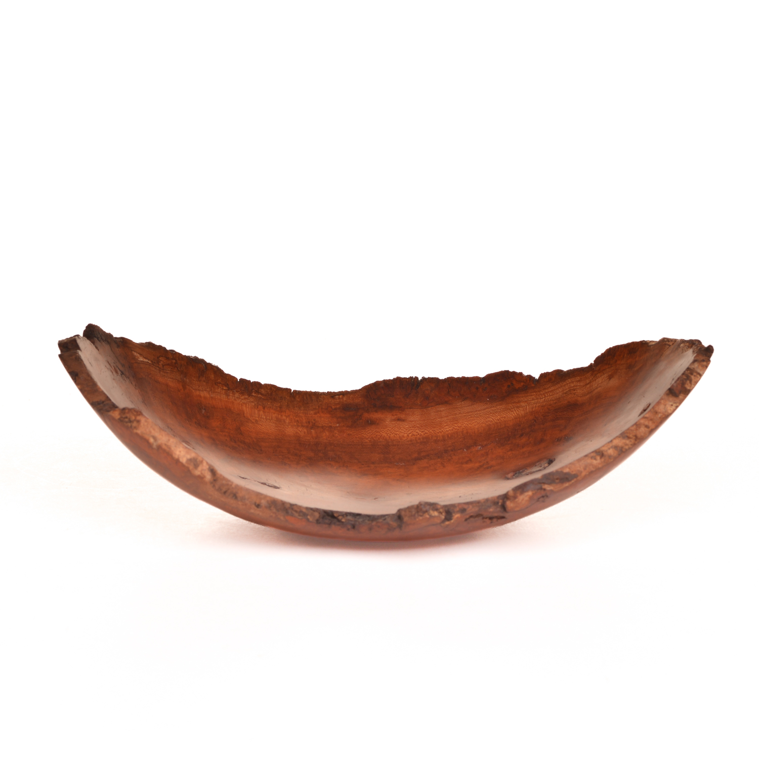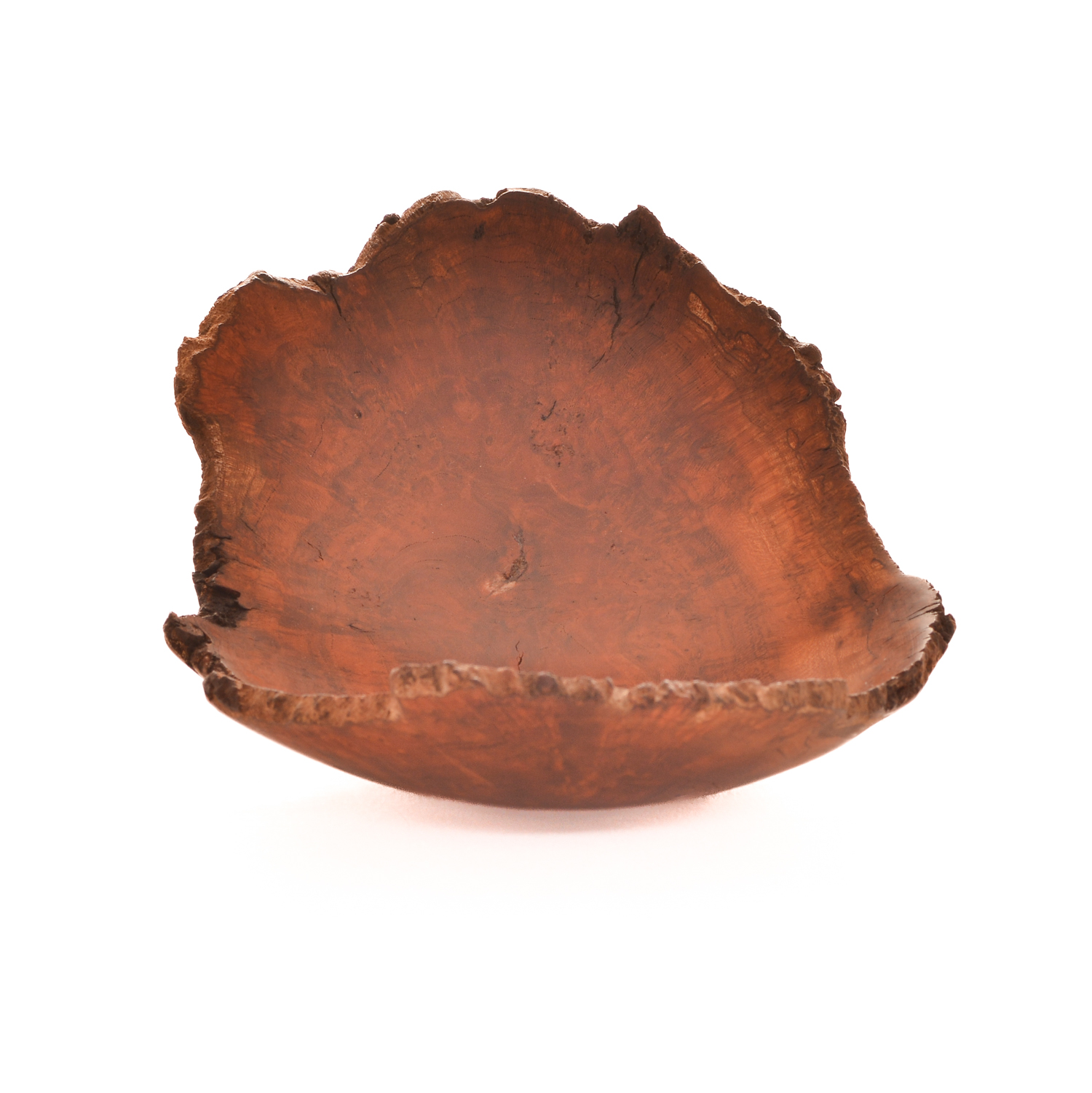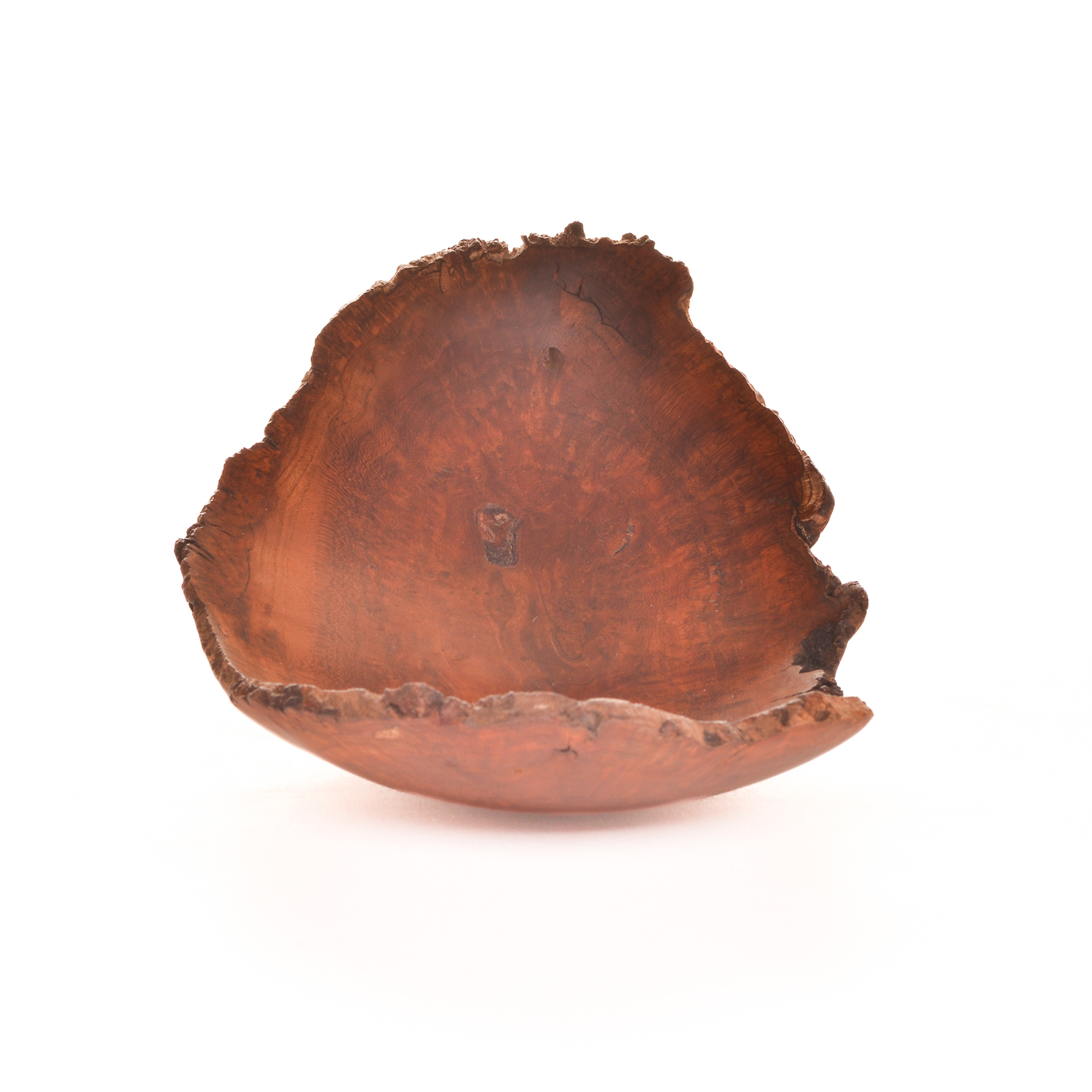 Artist Warren Carpenter enjoys finding a burl and figuring out the best way to turn it into a piece of artwork. He creates “normal and natural” bowls, but also experiments with new shapes and forms to release the beauty of a piece of wood. The final step in the creation process is the finish that will protect the wood without making a statement of its own. A finished turning will highlight the beauty of the wood, in a shape that is pleasant to both sight and feel.