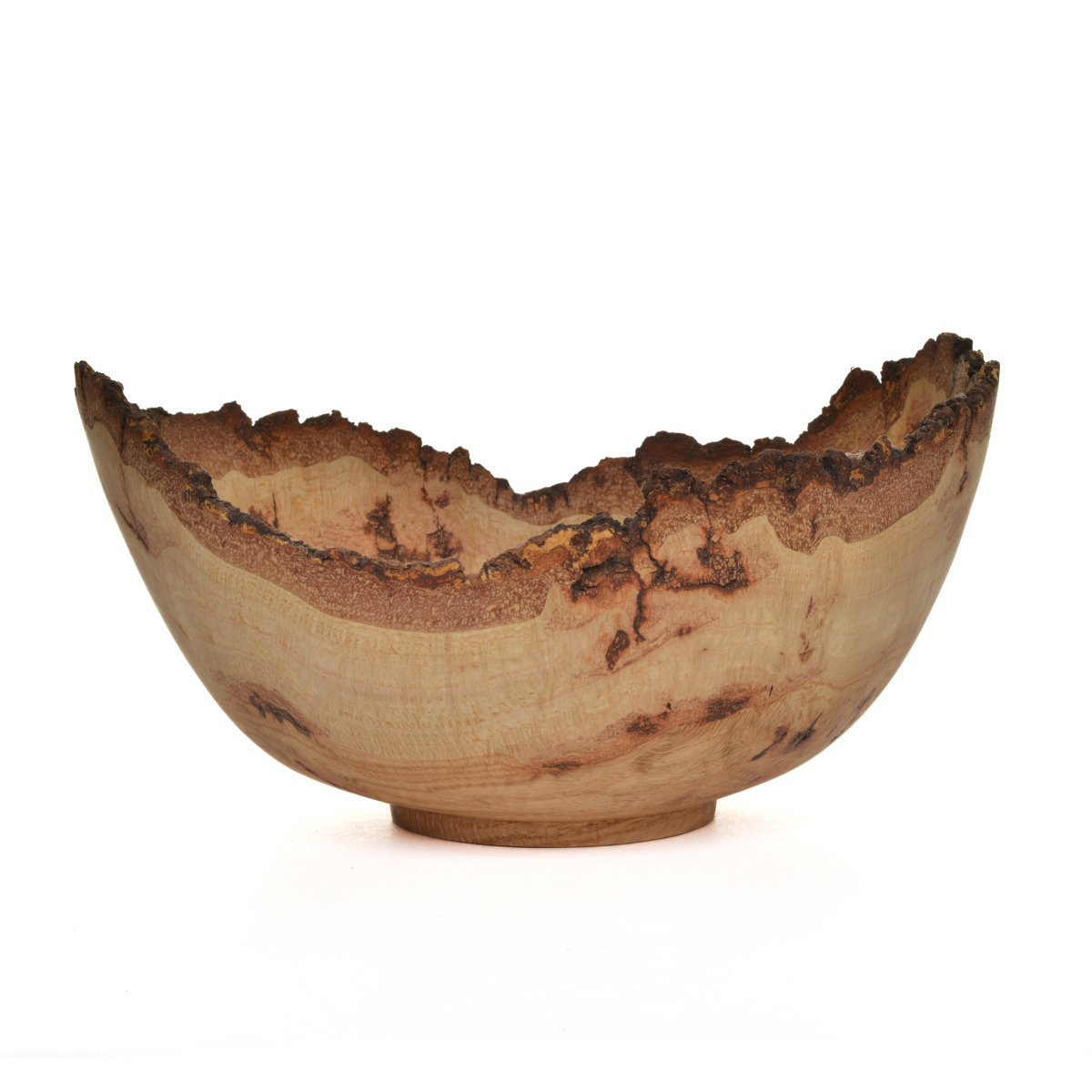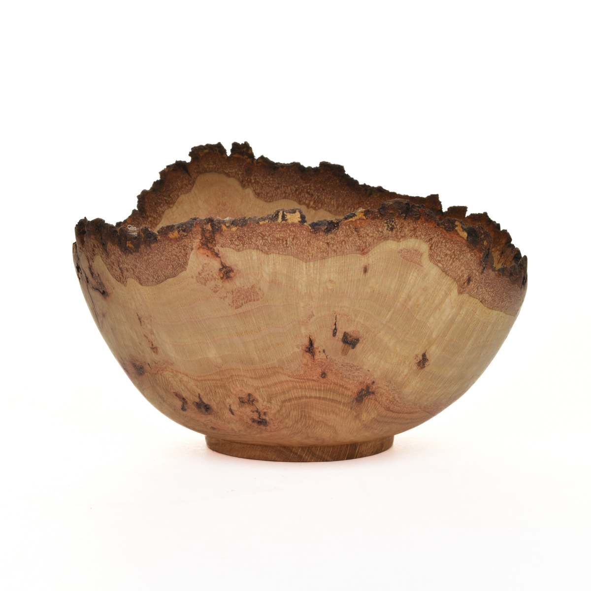 Artist Warren Carpenter enjoys finding a burl and figuring out the best way to turn it into a piece of artwork. He creates “normal and natural” bowls, but also experiments with new shapes and forms to release the beauty of a piece of wood. The final step in the creation process is the finish that will protect the wood without making a statement of its own. A finished turning will highlight the beauty of the wood, in a shape that is pleasant to both sight and feel.