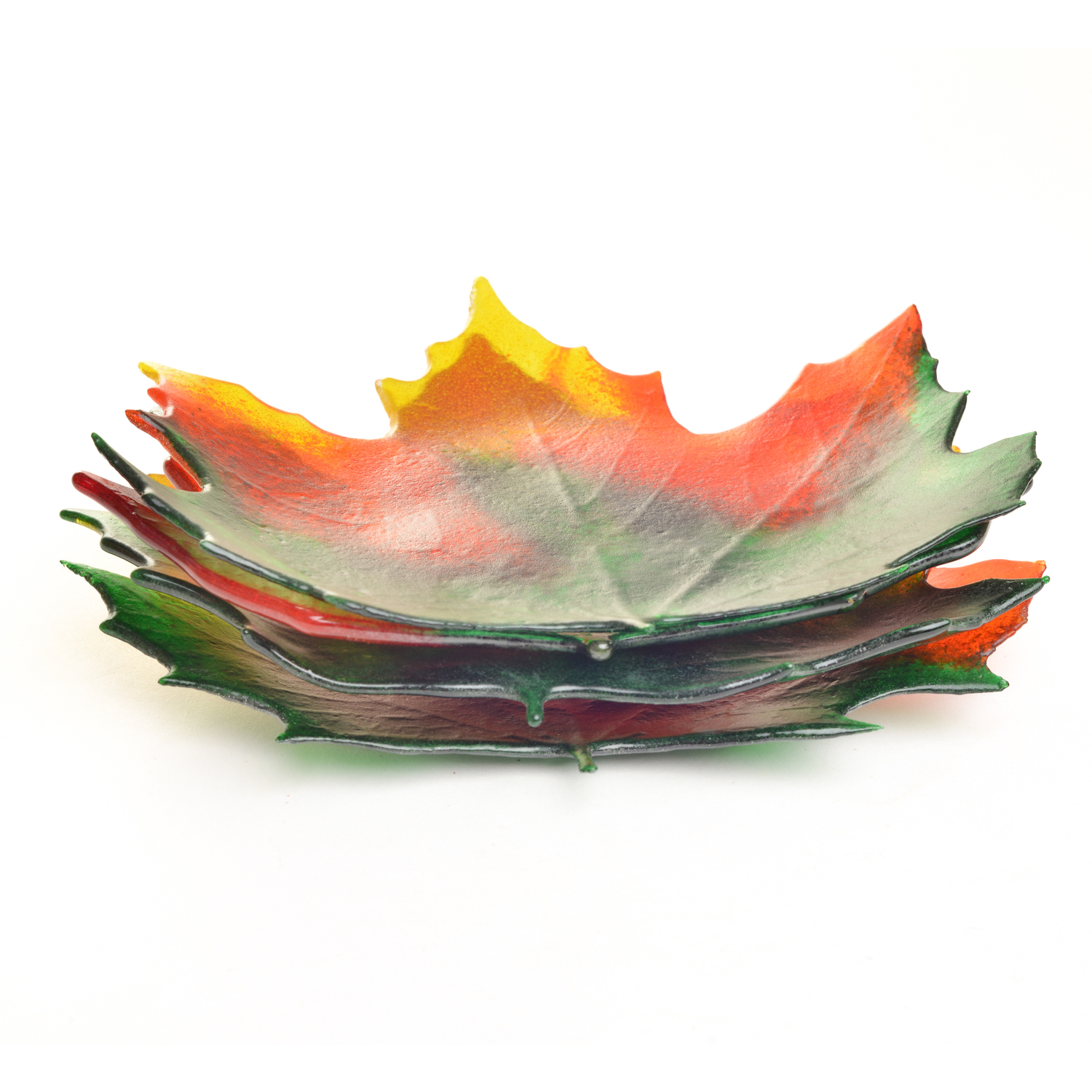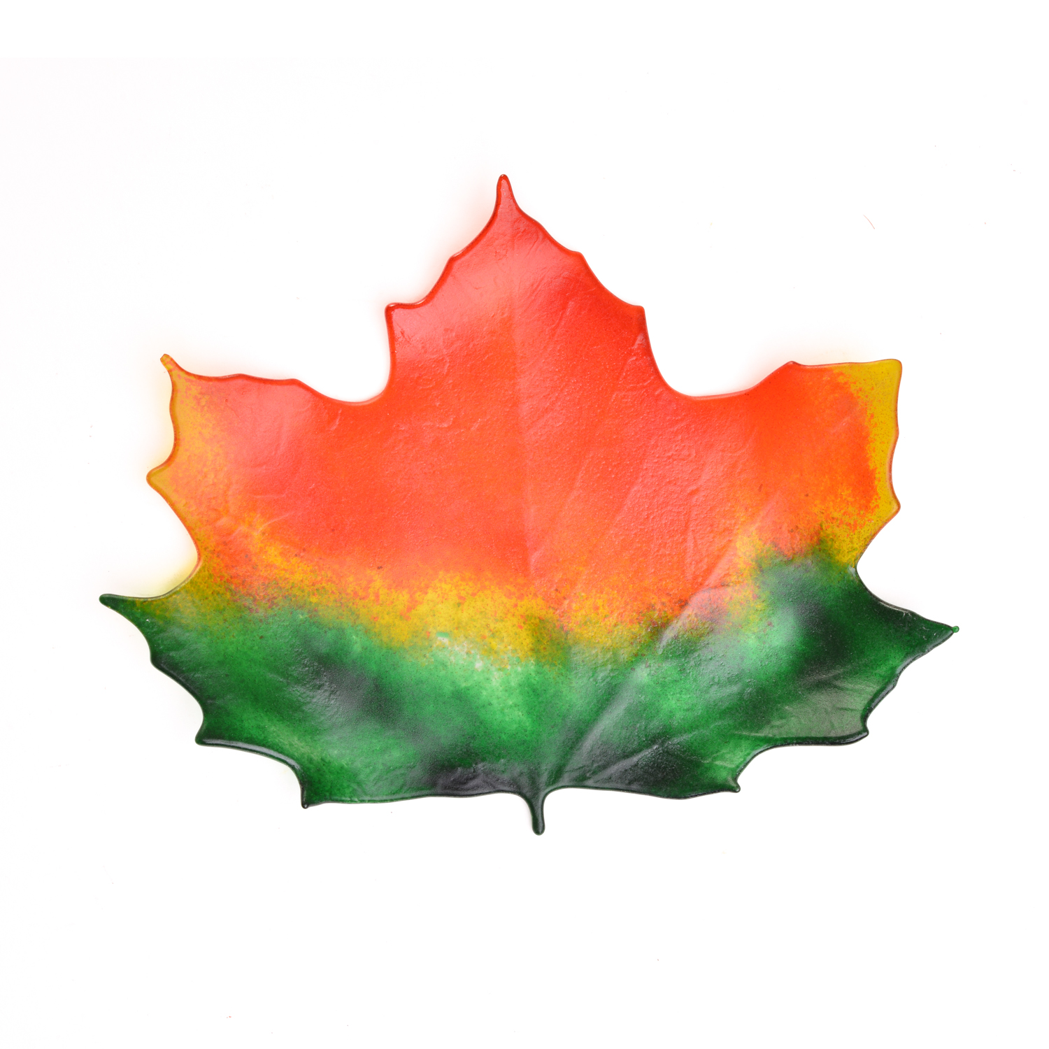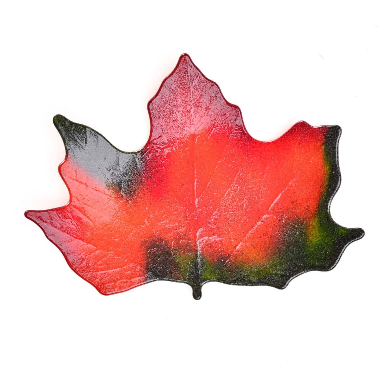 Great gift for a leaf lover! This glass Maple leaf dish is just the right touch for a mountain home. Artist Jim Burchett’s kiln-formed maple leaf brings the outside to the inside!