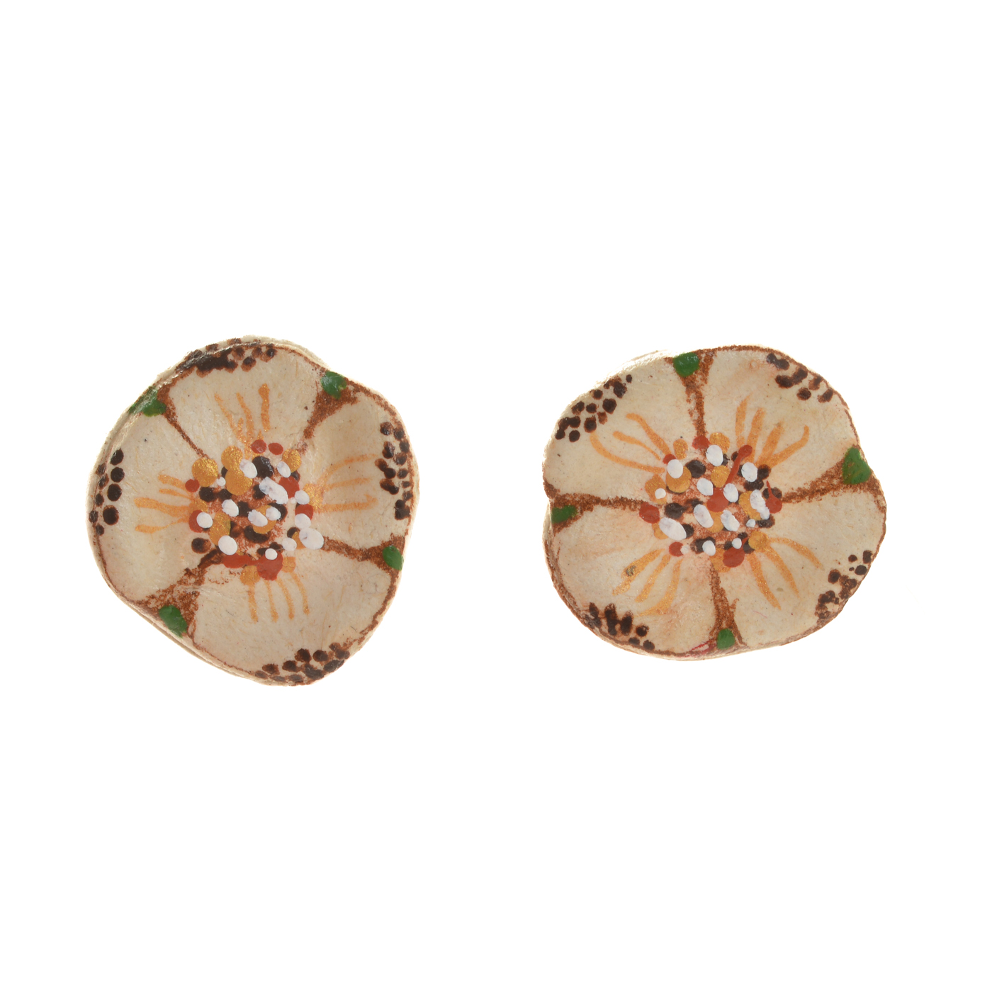 Original designs hand-painted on sunbaked paper clay by Mänya Pirkle of Tennessee. Each piece is inspired by fossils, pottery, and cave paintings—representing traces of human existence that have survived the ages.