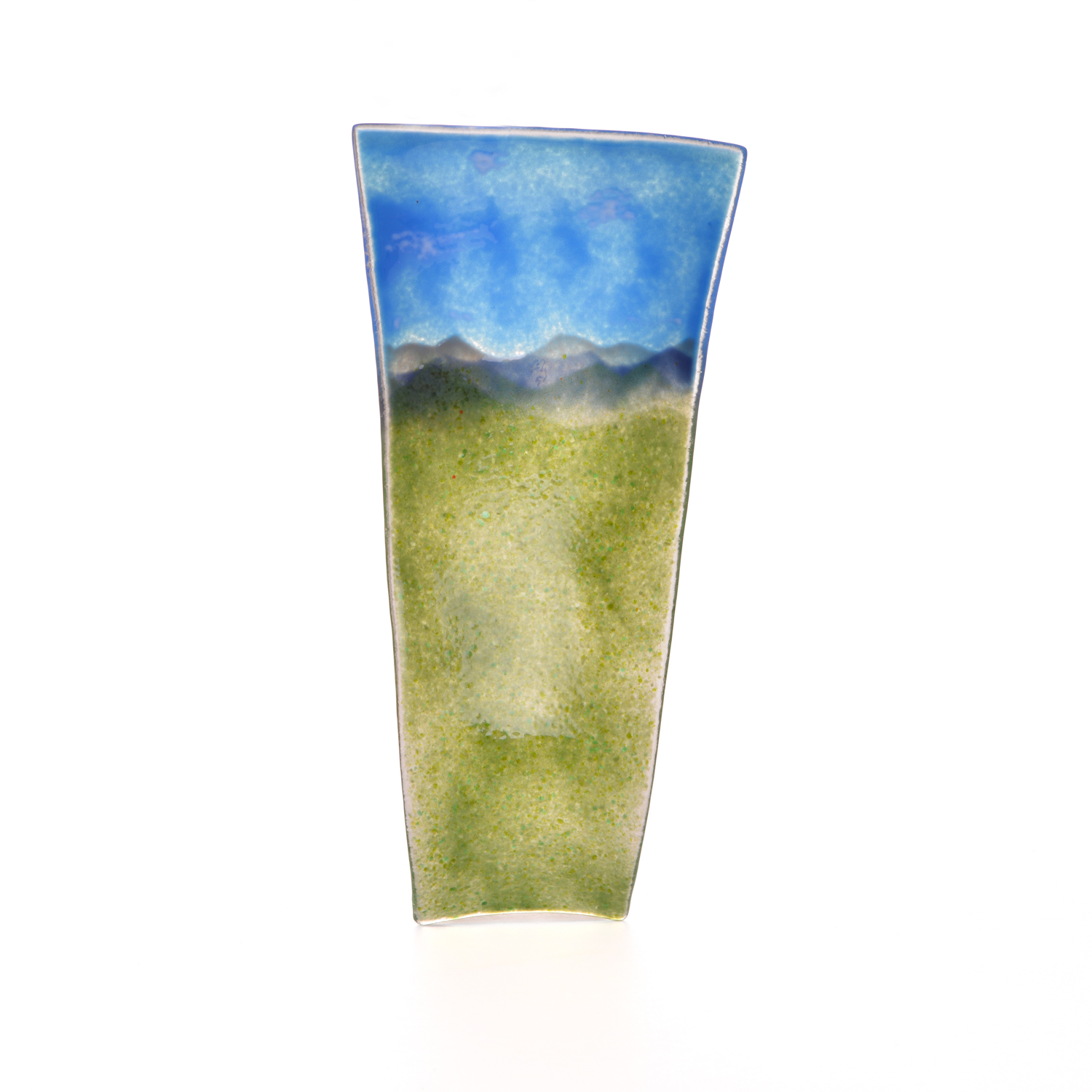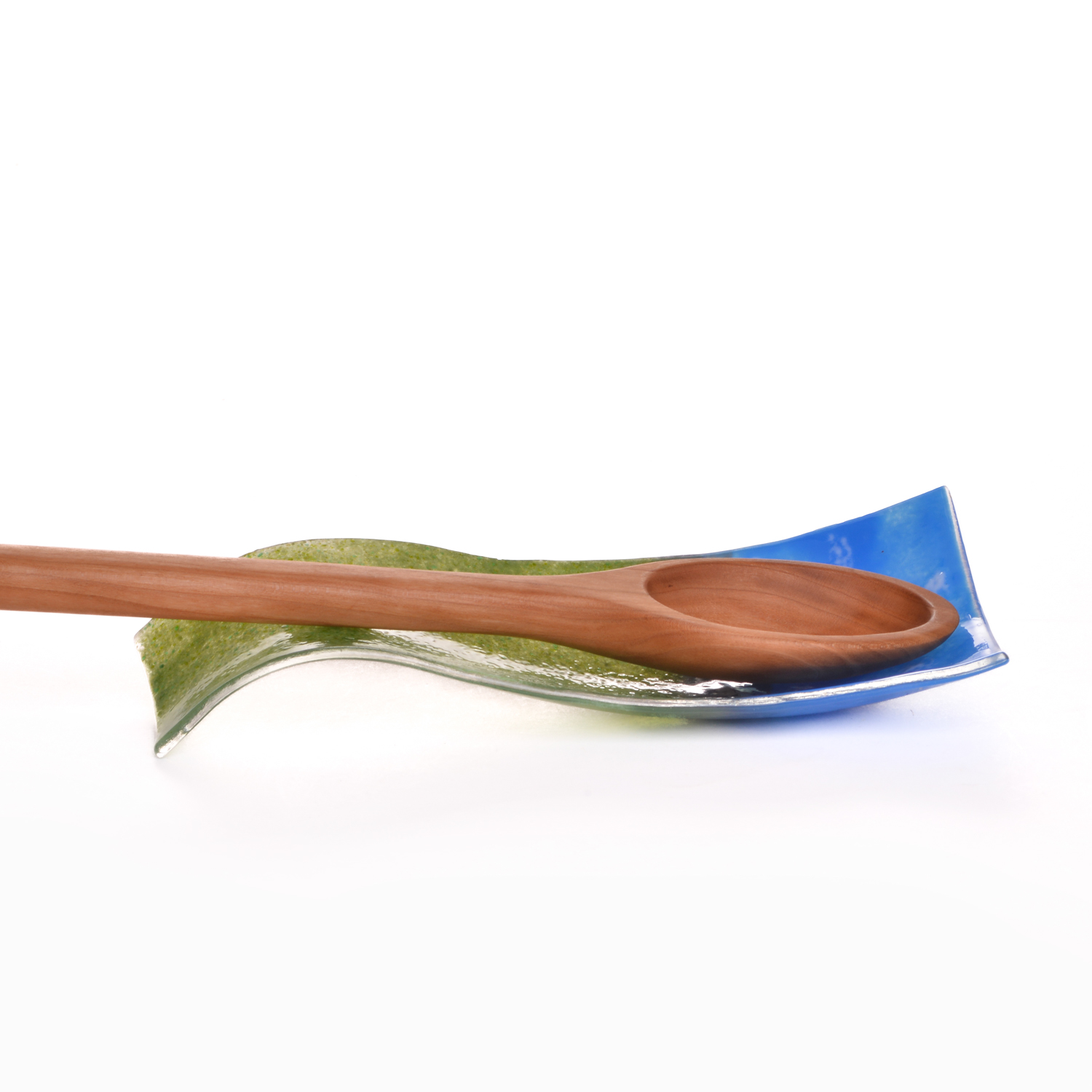 Glass mountain spoon rest for your favorite cook. This fun kitchen accessory will make cooking colorful. Just the right touch for a mountain home. Artist Jim Burchett’s kiln-formed glass spoon rest will keep your counter clean with a wide base and a perfectly angled handle by sending any drips to the bowl end.