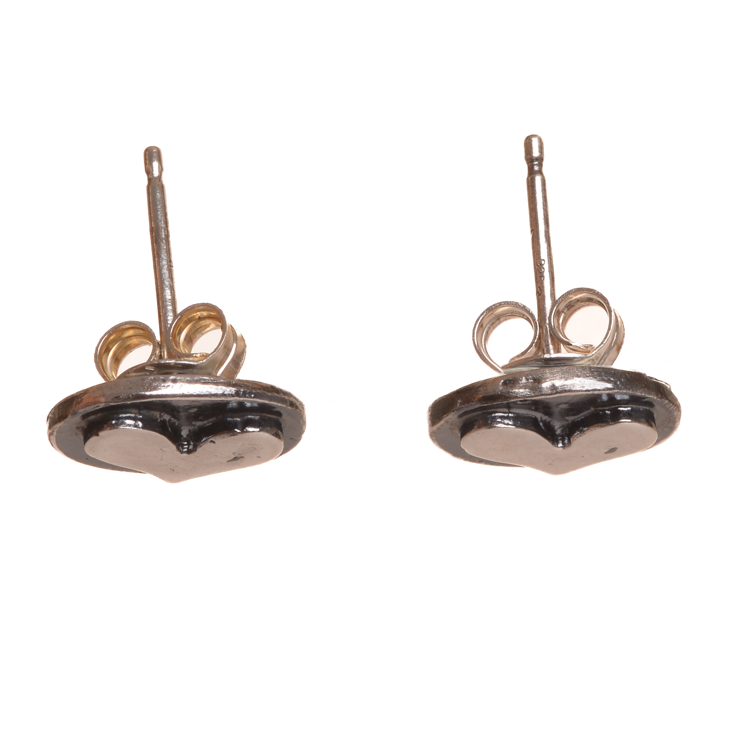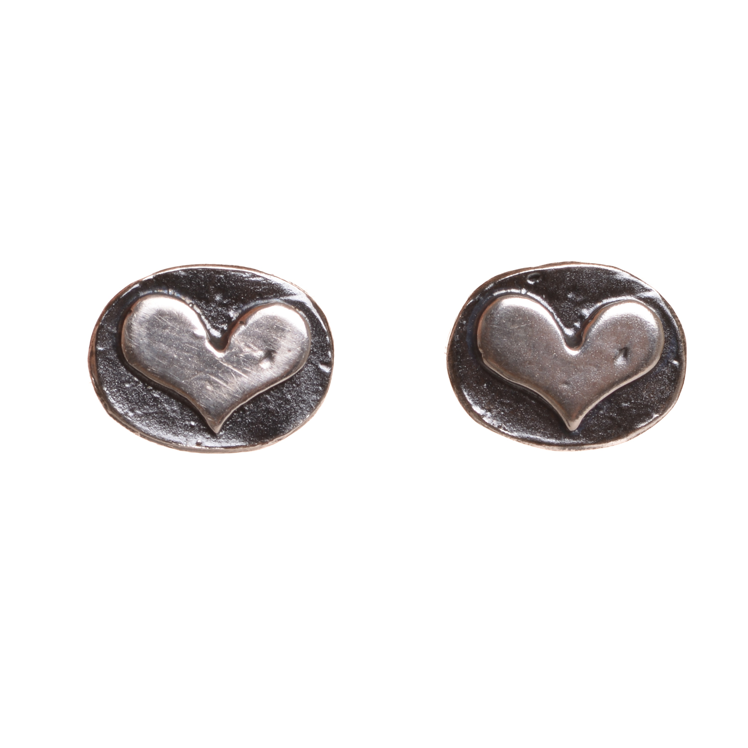 These dainty heart post earrings are cast from a granulated original and are cast using the lost wax process. Susan cuts out a heart of fine silver and fuses it to an oval background using the ancient fusing process of granulation.