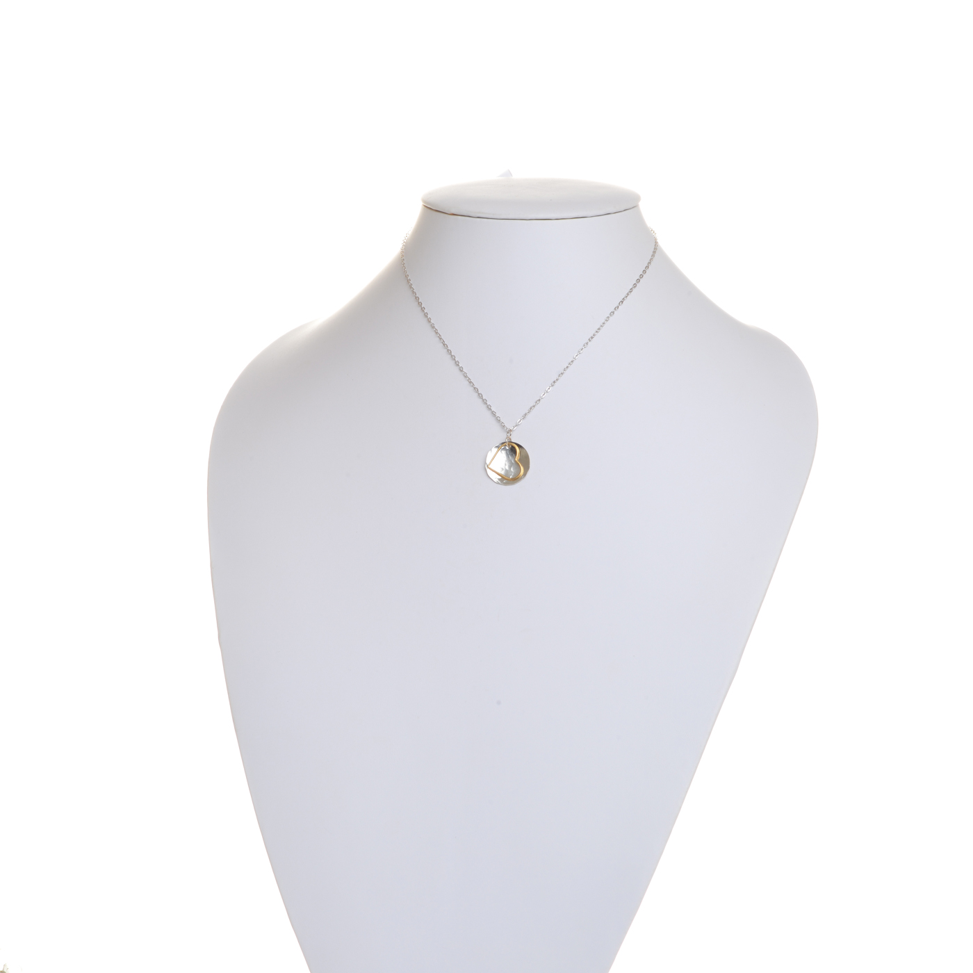 Sterling Silver Disc and Gold-filled Heart Necklace