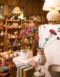 The gallery offers a curated selection of unique gifts for friends, family, and loved ones. Each piece tells a story of Southern Appalachia, from leather-bound journals to beeswax luminary candles and hand-blown glass vases. Relax on the front porch rocking chairs and enjoy the charming neighborhood atmosphere.
